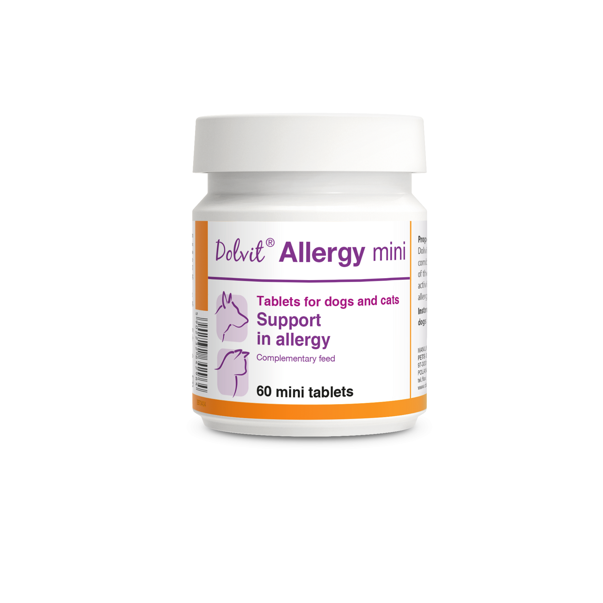 Complemento natural indicado para perros y gatos con alergias. Ideal para perros pequeños y gatos.